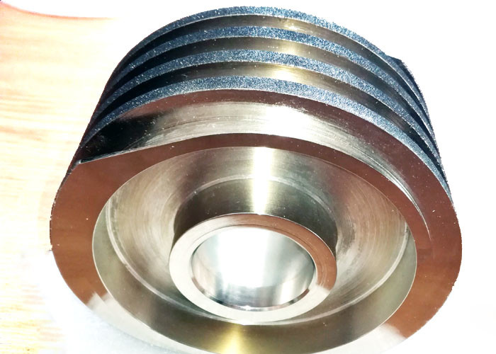 Os rebolos de afiação CBN eletrodepositados usados para afiar facas de cozinha são Ø165,1 mm e helicoidais, de modo que se sobrepõem, formando um ângulo fixo de 30°.