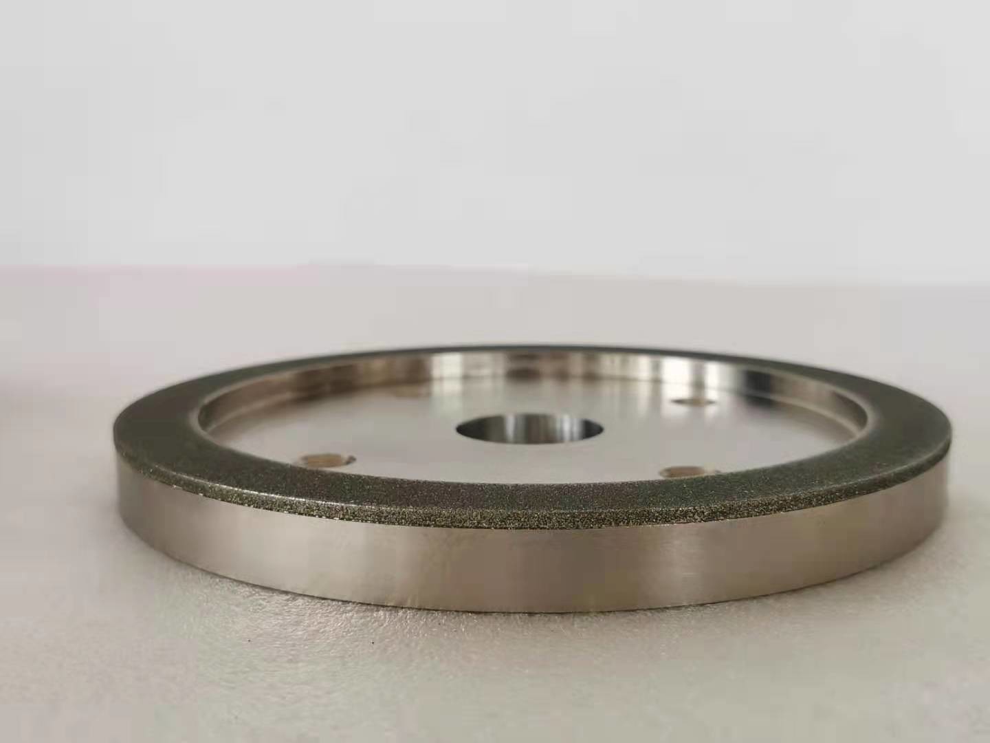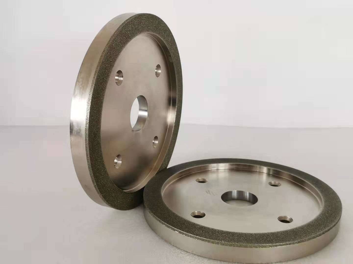 Para rodas de moedura do diamante, a camada de trabalho da roda de moedura contém grões abrasivas do diamante, e os abrasivos do diamante são ligados à carcaça por uma ligação do metal. Primeiramente, a espessura da ligação do metal depositada é 20% da altura das grões abrasivas do diamante (lixamento), e a ligação do metal é usada então para ligar (para engrossar) as grões abrasivas do diamante, e a espessura é aproximadamente 2/3 da altura das grões abrasivas. Incluindo o diamante que veste as rodas, as rodas de diamante para moer ou o corte.