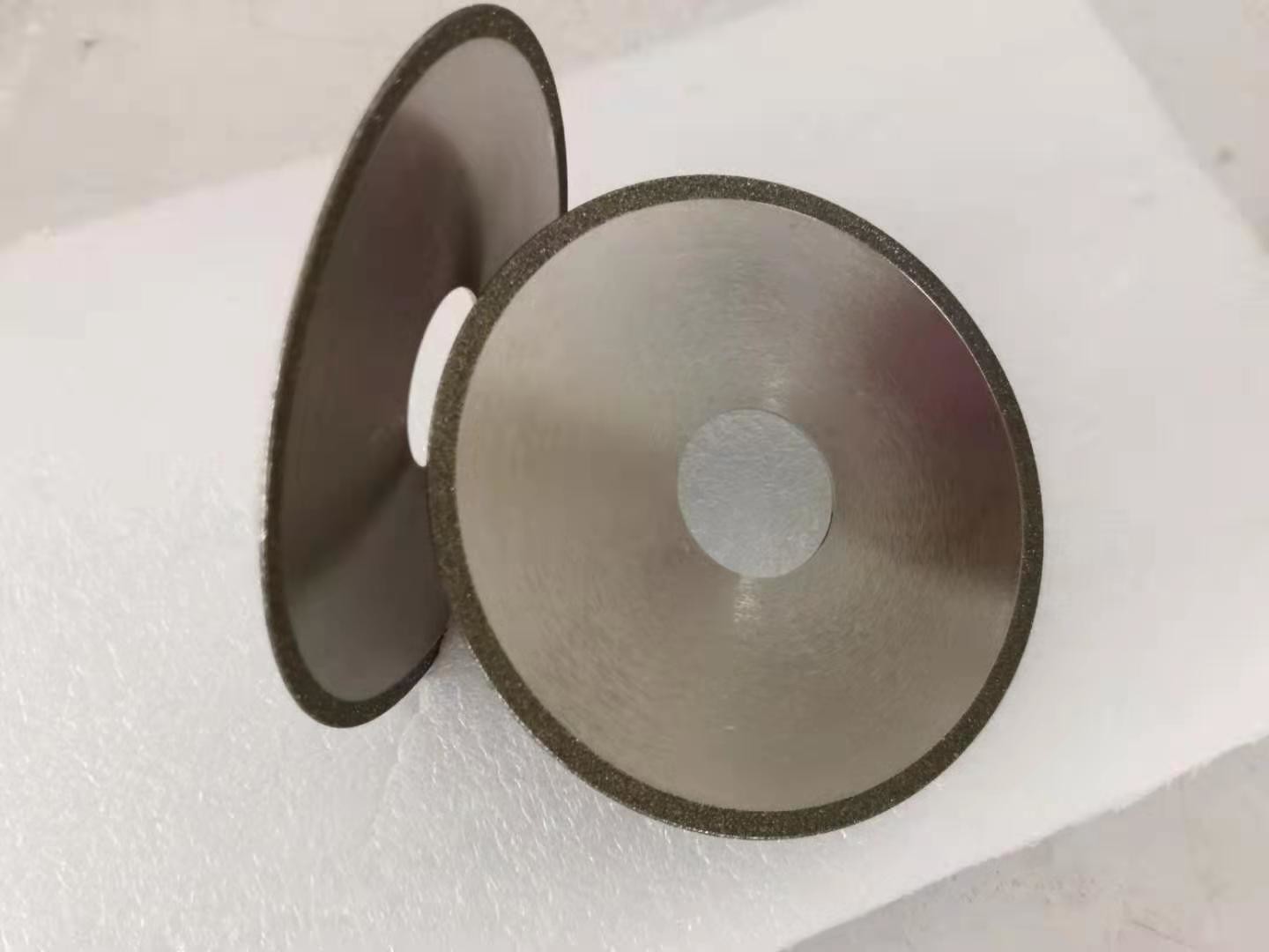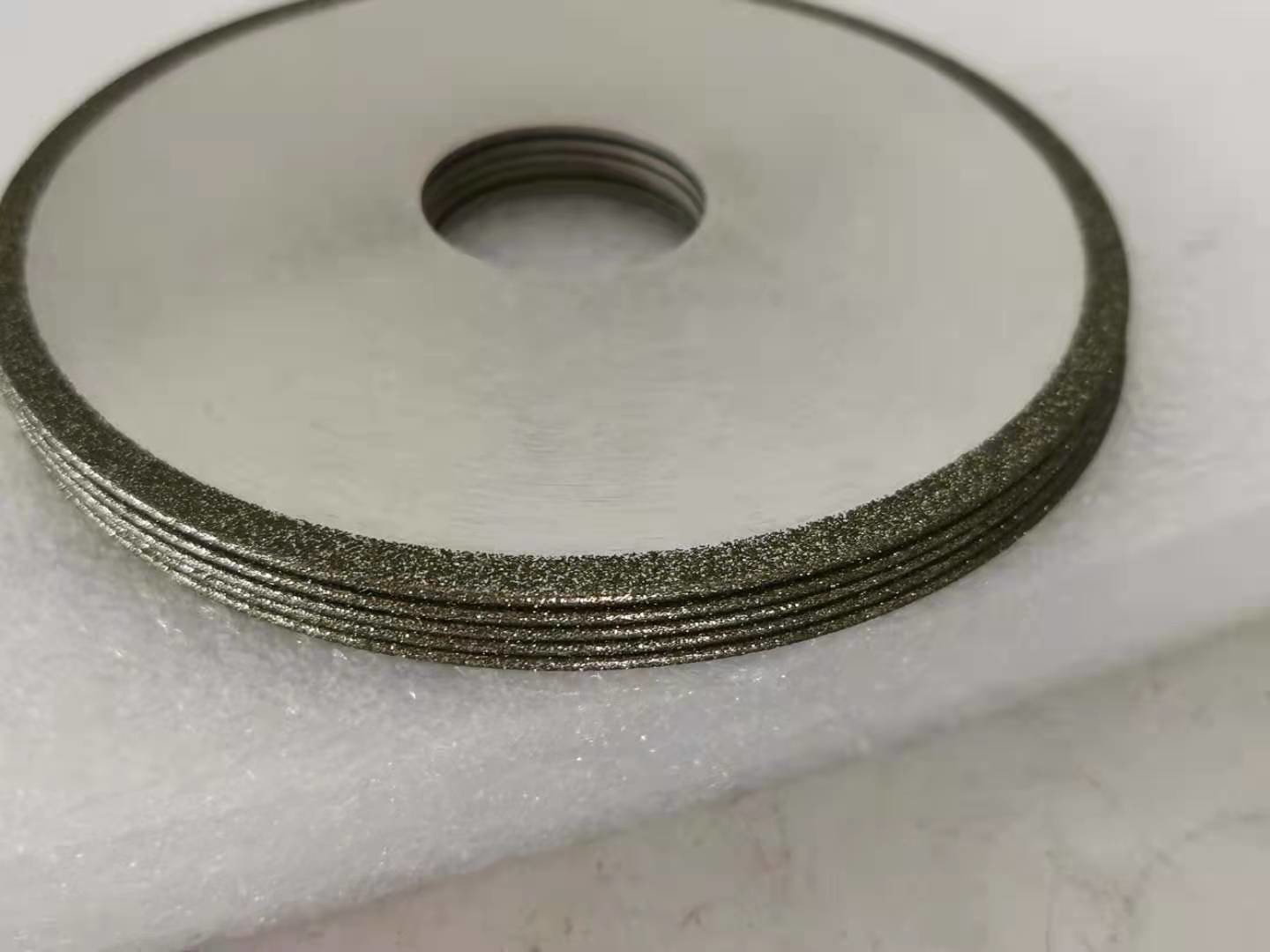 Para a lâmina de serra do diamante, a camada de trabalho da roda de moedura contém grões abrasivas do diamante, e os abrasivos do diamante são ligados à carcaça por uma ligação do metal. Primeiramente, a espessura da ligação do metal depositada é 20% da altura das grões abrasivas do diamante (lixamento), e a ligação do metal é usada então para ligar (para engrossar) as grões abrasivas do diamante, e a espessura é aproximadamente 2/3 da altura das grões abrasivas.