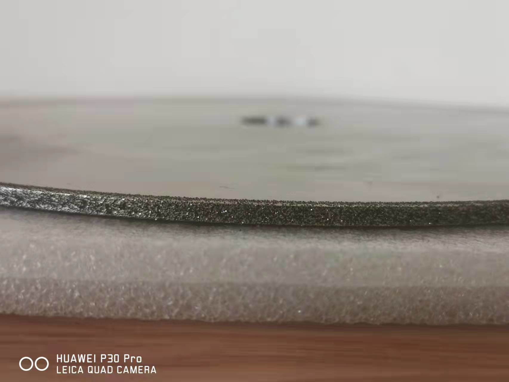 a lâmina de serra lectroplated do diamante é feita eletroquimicamente a diamante viu a lâmina. A camada de trabalho da lâmina de serra contém partículas abrasivas do diamante, e o abrasivo do diamante é ligado à matriz pela pasta do metal. A espessura da ligação do metal foi depositada primeiramente a 20% da altura do abrasivo do diamante (areia superior), e o abrasivo do diamante foi ligado então (engrossado) com a ligação do metal a aproximadamente 2/3 da altura do abrasivo.