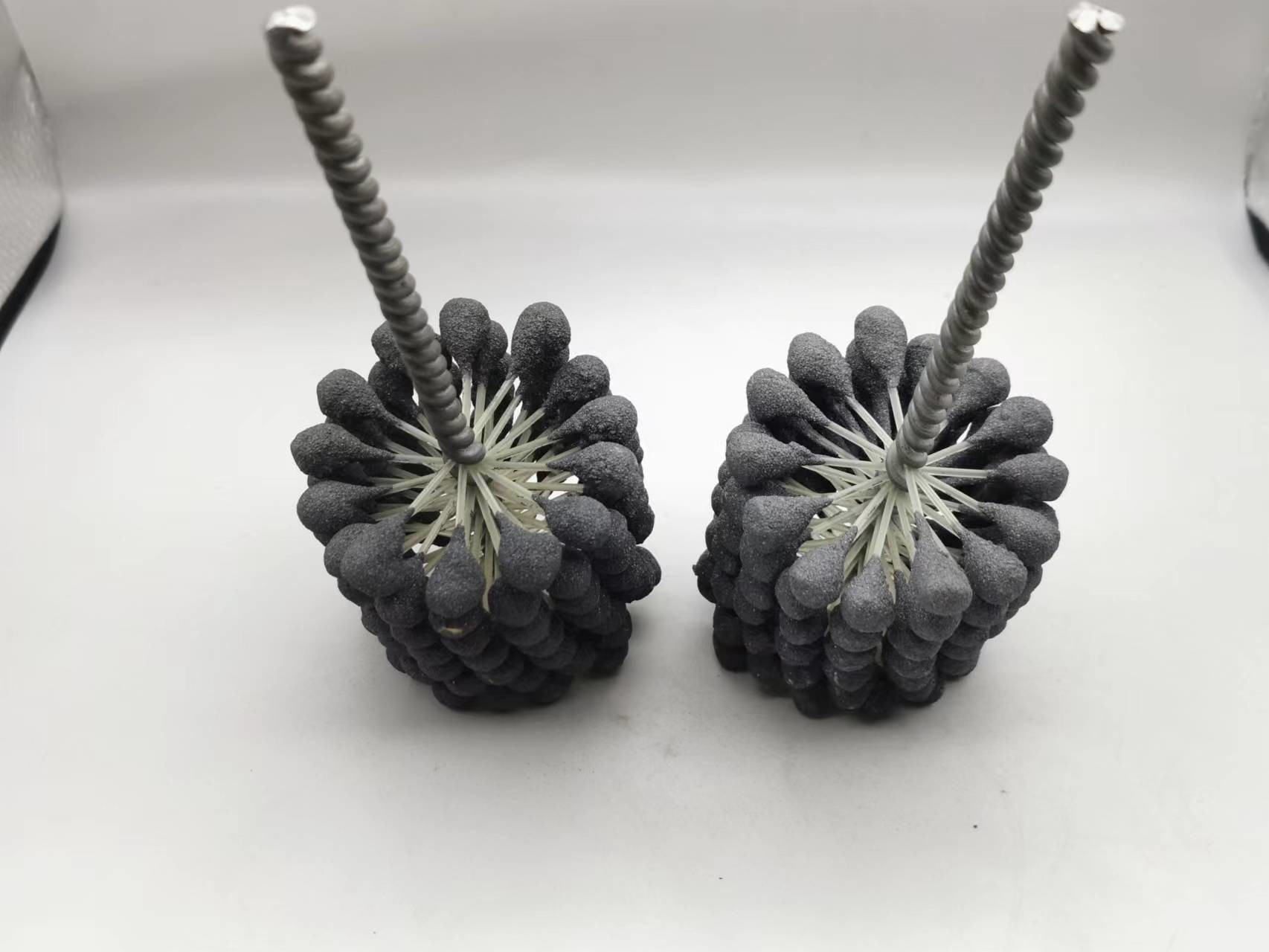 1. Esta pedra de afiar flexível do cilindro do produto é uma escova de afiação resiliente, flexível com os abrasivos do carboneto de silicone para o uso de aço, de aço inoxidável suaves, e no ferro fundido. A escova fornece a ação de corte macia e remove as rebarbas dos furos cruz-furados. A suspensão independente assegura auto-centrar-se, auto-alinhar ao furo, e a auto-compesação para o desgaste.