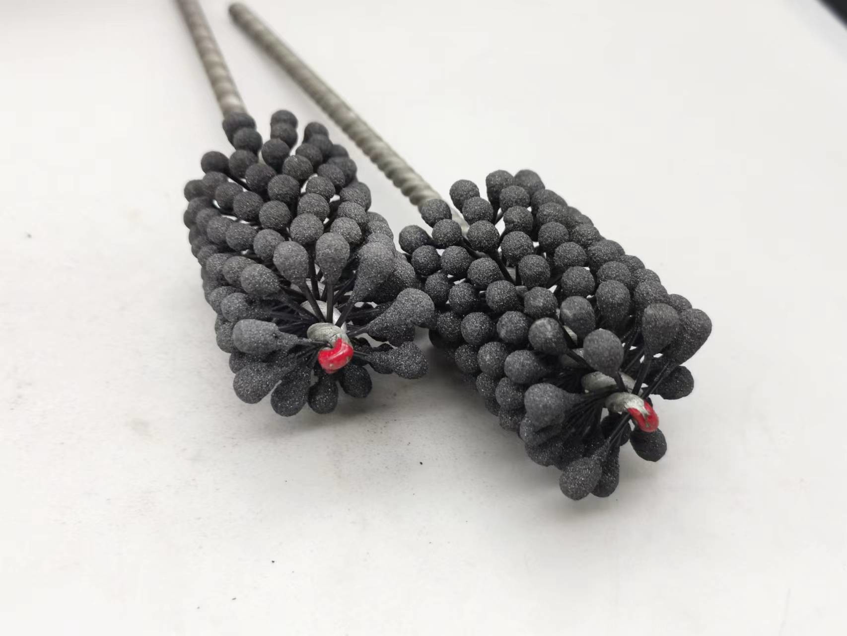 1. Esta pedra de afiar flexível do cilindro do produto é uma escova de afiação resiliente, flexível com os abrasivos do carboneto de silicone para o uso de aço, de aço inoxidável suaves, e no ferro fundido. A escova fornece a ação de corte macia e remove as rebarbas dos furos cruz-furados. A suspensão independente assegura auto-centrar-se, auto-alinhar ao furo, e a auto-compesação para o desgaste.