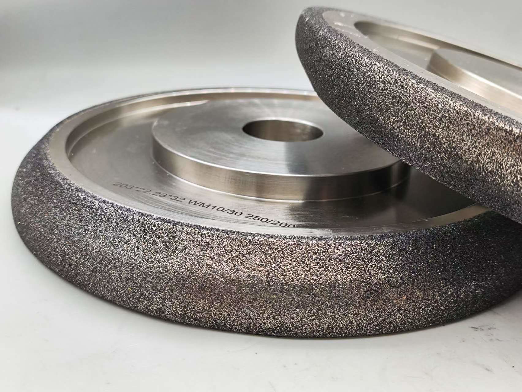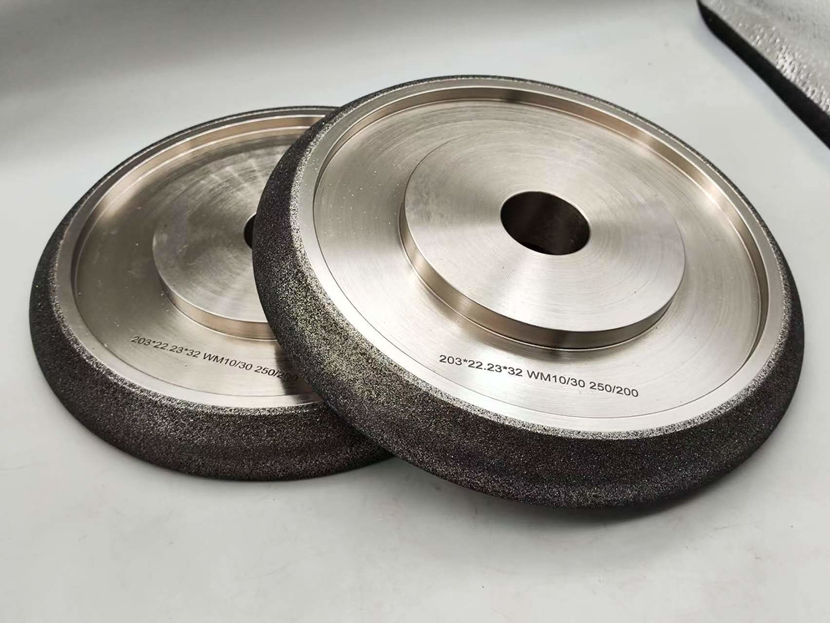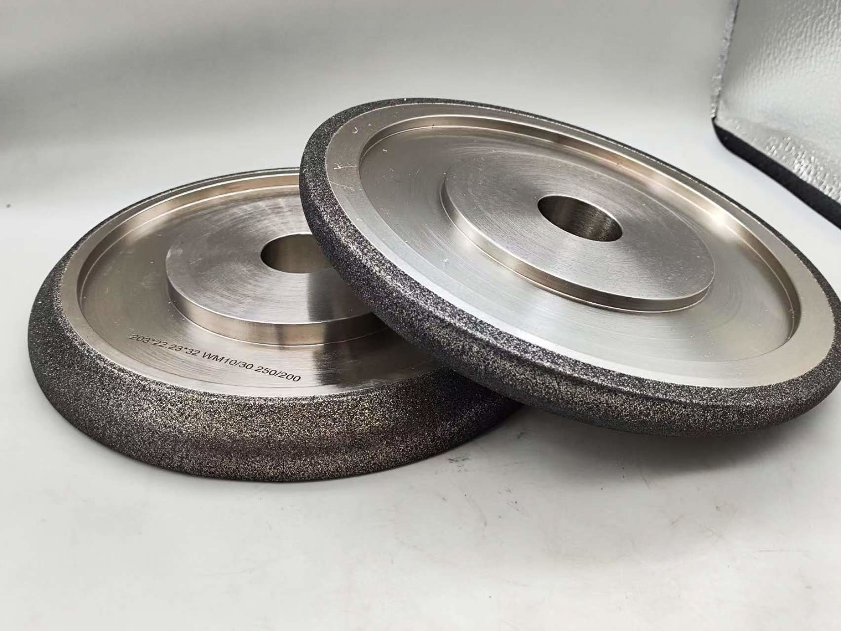 As rodas de moagem CBN ou Nitreto de Boro Cúbico são eletroplatadas e revestidas de níquel.Ele cria uma ligação mais agressiva sobre outras aplicações e vai manter uma forma mais tempoSão concebidos apenas para afiar serras de madeira e não devem ser utilizados para outras aplicações.