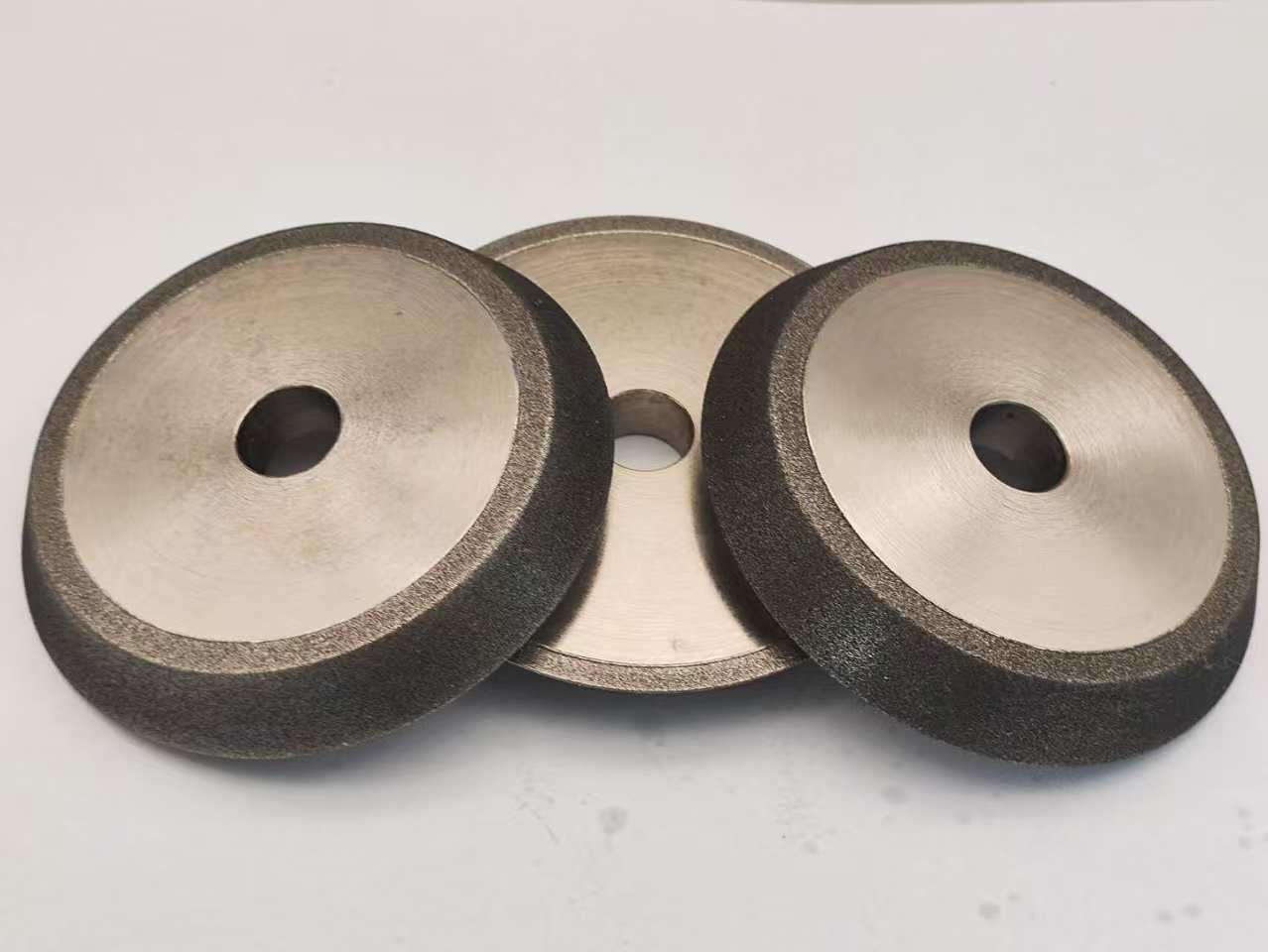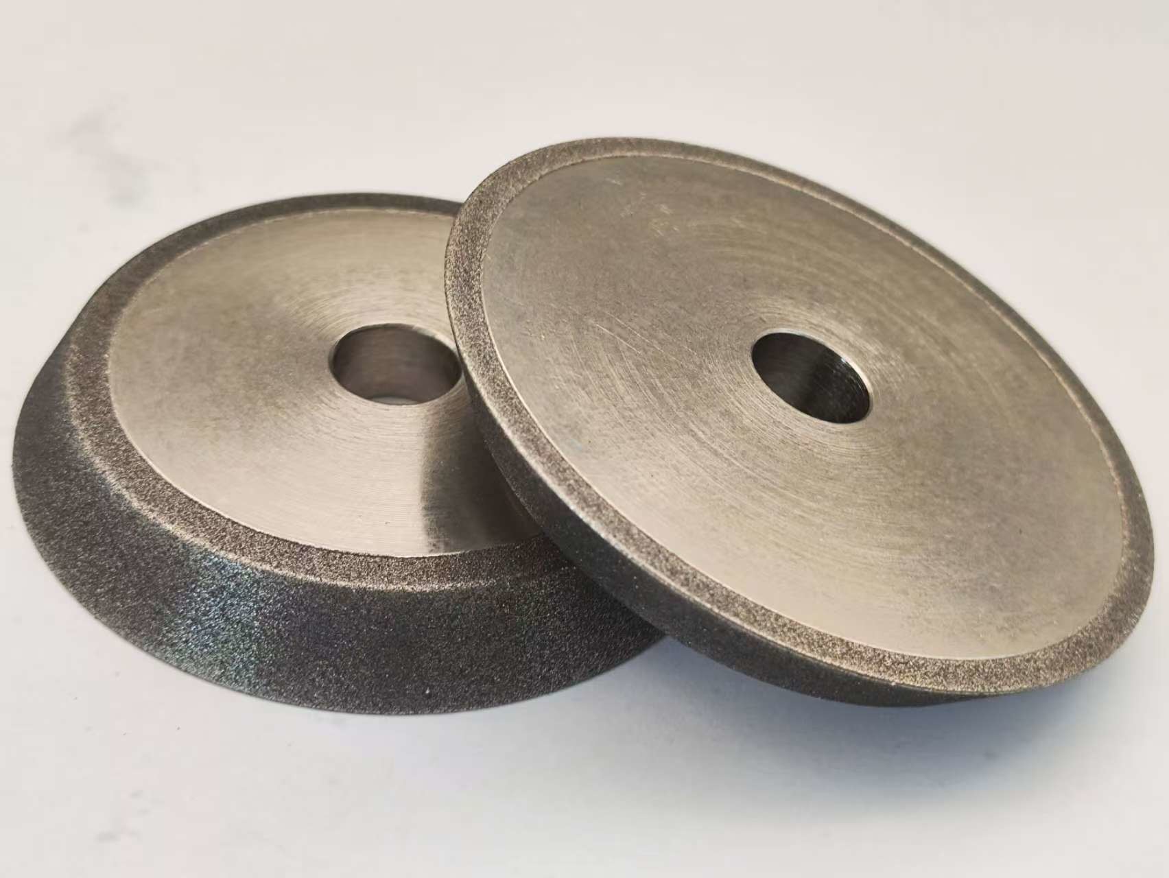 As rodas de moagem CBN ou Nitreto de Boro Cúbico são eletropladas e revestidas de níquel.Ele cria uma ligação mais agressiva sobre outras aplicações e vai manter uma forma mais tempoSão concebidos apenas para afiar serras de madeira e não devem ser utilizados para outras aplicações.